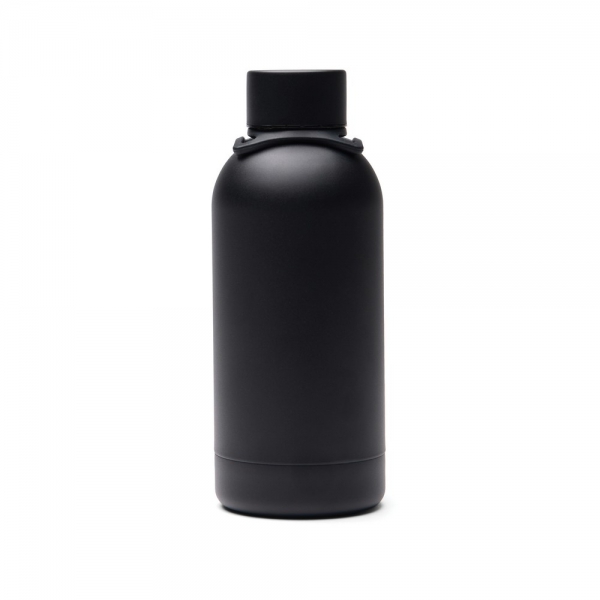 Butelka termiczna 400 ml, posiada podwójne ścianki ze stali nierdzewnej z recyklingu z próżnią między ściankami, co spowalnia oddawanie temperatury na zewnątrz, zachowując funkcje termosu, posiada odpinany pasek do noszenia, wykonana ze stali nierdzewnej z recyklingu, całkowita zawartość materiałów z recyklingu obliczona na podstawie masy całkowitej produktu: 71%