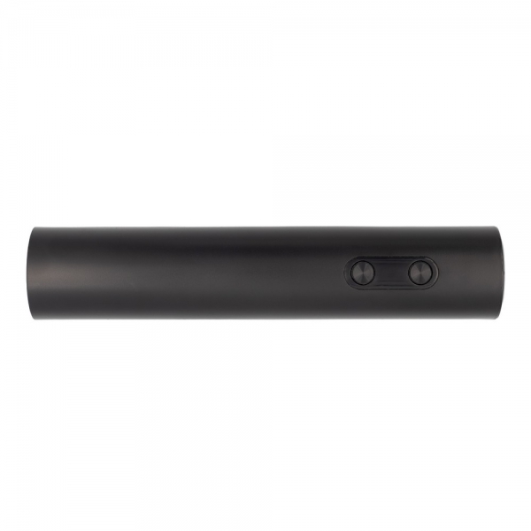 Elektryczny korkociąg do wina z wymiennymi bateriami, smukła metaliczna obudowa, dwa przyciski do obsługi, szybkie wyciąganie korka z butelki, elegancki wygląd idealny do zestawów prezentowych, zalecane użycie baterii alkalicznych dla prawidłowego działania produktu