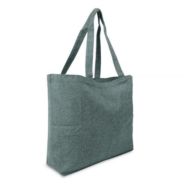 Torba na zakupy Fairtrade B’RIGHT w kolorach melange, z szerokim i wytrzymałym dnem, posiada długie uchwyty (długość 70 cm, szerokość 3 cm) umożliwiające noszenie na ramieniu, możliwość nadrukowania dużego i widocznego z daleka logotypu, wykonana w 50% z nieprzetworzonej bawełny i w 50% z poliestru z recyklingu o gramaturze 300 g/m²