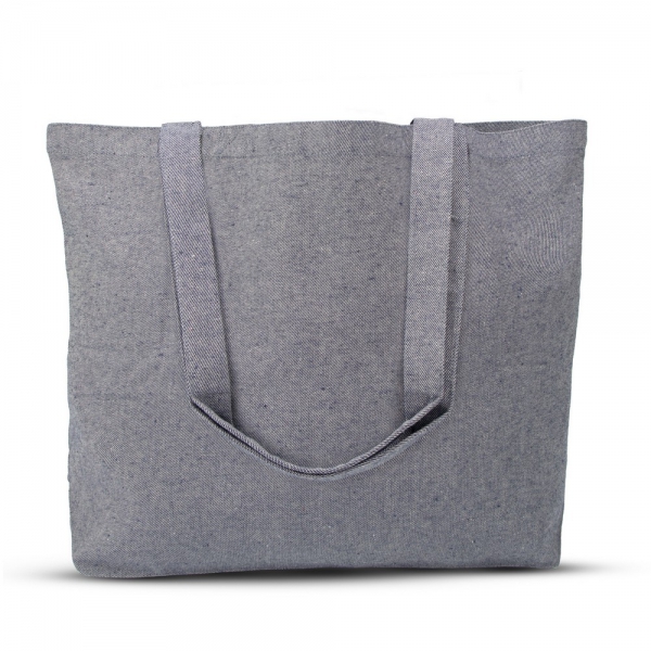 Torba na zakupy Fairtrade B’RIGHT w kolorach melange, z szerokim i wytrzymałym dnem, posiada długie uchwyty (długość 70 cm, szerokość 3 cm) umożliwiające noszenie na ramieniu, możliwość nadrukowania dużego i widocznego z daleka logotypu, wykonana w 50% z nieprzetworzonej bawełny i w 50% z poliestru z recyklingu o gramaturze 300 g/m²