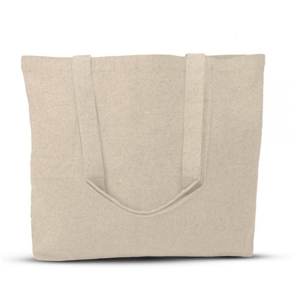 Torba na zakupy Fairtrade B’RIGHT w kolorach melange, z szerokim i wytrzymałym dnem, posiada długie uchwyty (długość 70 cm, szerokość 3 cm) umożliwiające noszenie na ramieniu, możliwość nadrukowania dużego i widocznego z daleka logotypu, wykonana w 50% z nieprzetworzonej bawełny i w 50% z poliestru z recyklingu o gramaturze 300 g/m²
