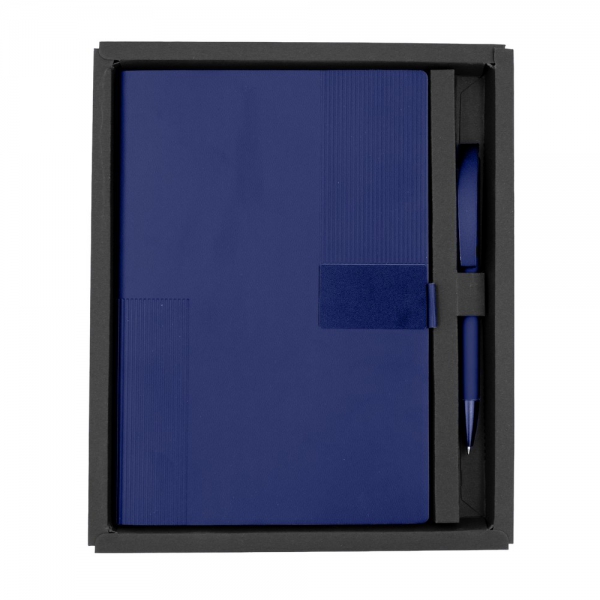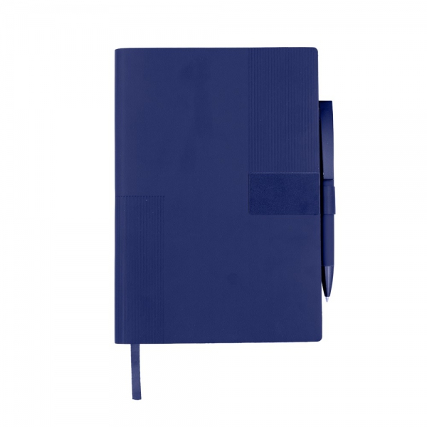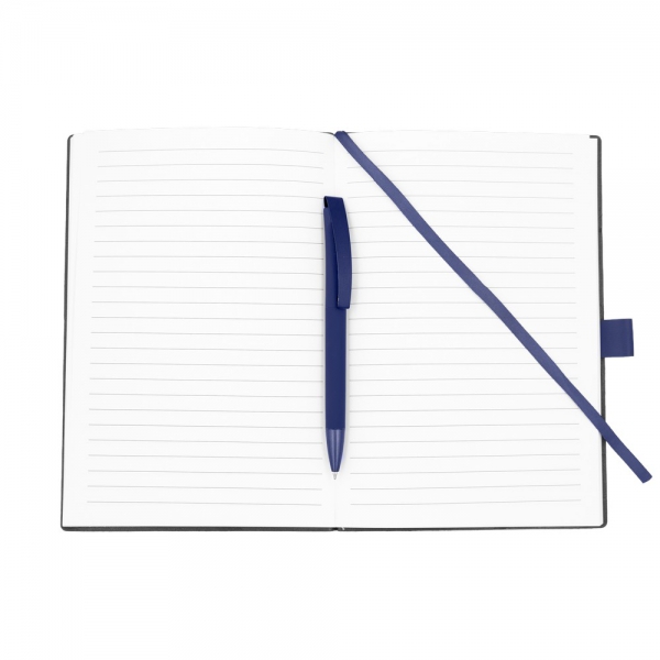 Notatnik w formacie ok. A5 posiada 80 kartek w linie (70 g/m²), tasiemka zakładkowa umożliwia wygodne zaznaczanie ostatniej strony lub ważniejszych notatek, w komplecie długopis typu "twist" z szerokim aluminiowym klipem przeznaczonym do grawerowania, przy szlufce na długopis znajduje się metalowa plakietka do grawerowania, twarda okładka wykonana z PU