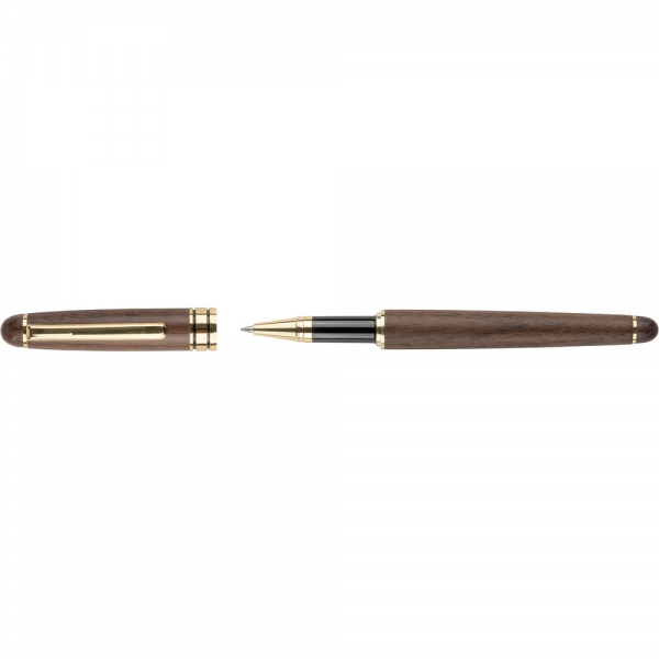 Zestaw piśmienniczy, długopis i pióro kulkowe, wkład w niebieskim kolorze wystarcza na ok. 1000 m pisania dla długopisu, ok. 400 m pisania dla pióra kulkowego, zapakowany pojedynczo w brązowy kartonik, produkt wykonany z metalu