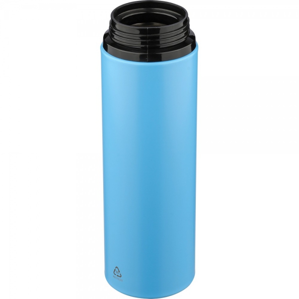 Butelka sportowa 500 ml, z uchwytem ułatwiającym przenoszenie, pojedyncza ścianka, składany ustnik ze słomką, ikona recyklingu na produkcie, zapakowana pojedynczo w brązowe kartonowe pudełko, produkt wykonany ze stali nierdzewnej 304 z recyklingu