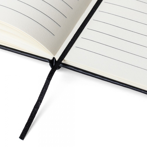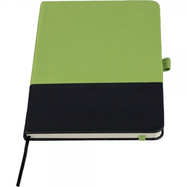 Notatnik ok. A5, posiada 80 kartek w linie, 70 g/m², produkt wykonany z RPET i PU