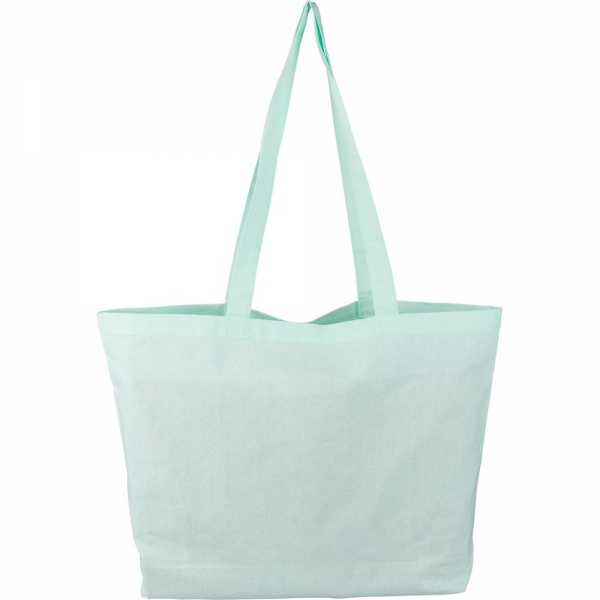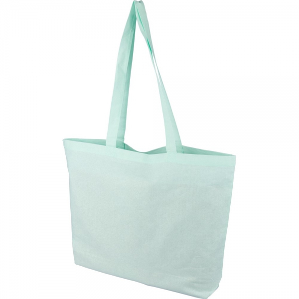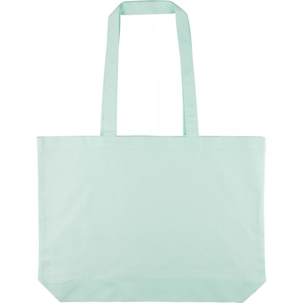 Torba na zakupy 140 g/m², o pojemności 16 litrów, posiada długie uchwyty umożliwiające noszenie na ramieniu (2,5 x 70 cm), ikona OEKO-TEX na metce, produkt wykonany z farbowanej bawełny