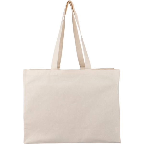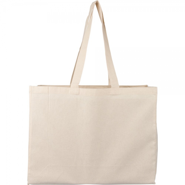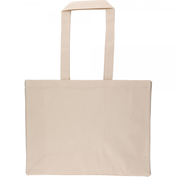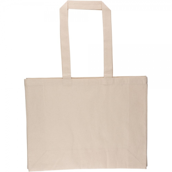 Torba na zakupy 180 g/m² o pojemności 21 litrów, posiada długie uchwyty umożliwiające noszenie na ramieniu (3 x 67 cm), ikona OEKO-TEX na metce, produkt wykonany z bawełny naturalnej
