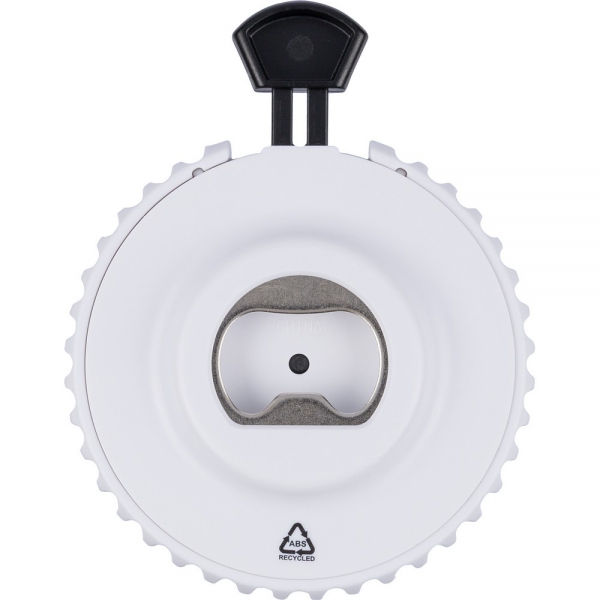 Otwieracz do butelek, ikona ABS na produkcie, zapakowany w woreczek, produkt wykonany z ABS z recyklingu