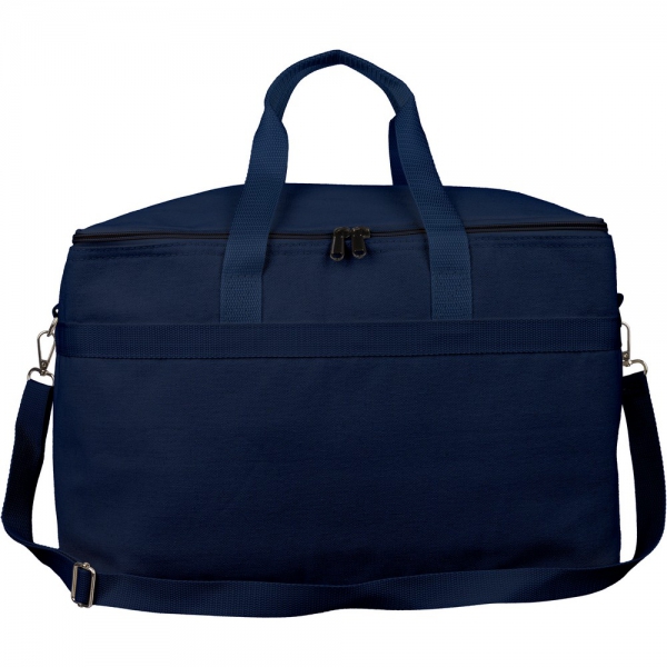 Torba termoizolacyjna 330 g/m² o pojemności 23 l, dwa uchwyty do noszenia (3,5 x 60 cm), posiada regulowany uchwyt umożliwiający noszenie na ramieniu (2,5 x 110 cm), metalowa klamra, wnętrze wyłożone folią aluminiową, ikona RPET na metce, produkt wykonany z polibawełny z recyklingu, folii aluminiowej i RPET