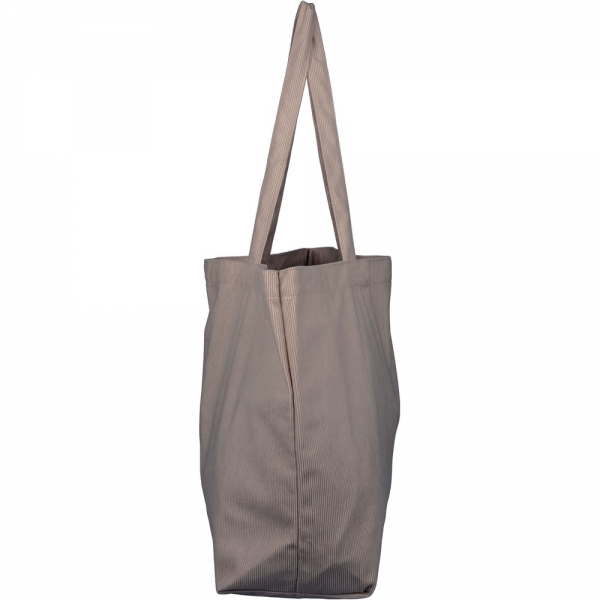 Torba na zakupy o pojemności ok. 25 litrów, posiada długie uchwyty umożliwiające noszenie na ramieniu (2,5 x 60 cm), podszewka z poliestru 210D, niewielka kieszeń wewnętrzna (10 x 10 cm), produkt wykonany ze sztruksu i poliestru