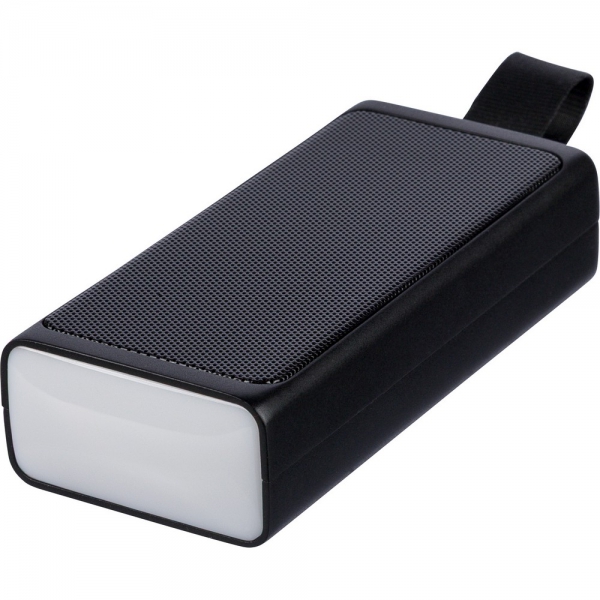Głośnik bezprzewodowy 5W, metalowa siatka, uchwyt ułatwiający noszenie, latarka (lampka COB i LED), wejście 5v/500mA, BT5.4, bateria 500 mAh, zapakowany pojedynczo w brązowy kartonik, produkt wykonany z ABS z recyklingu, metalu i silikonu