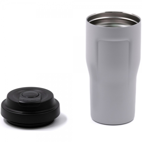 Kubek termiczny 510 ml BrandCharger Posh Café, wieczko otwierane przyciskiem, posiada podwójne ścianki ze stali nierdzewnej z próżnią między ściankami, co spowalnia oddawanie temperatury na zewnątrz, zachowując funkcje termosu, można myć w zmywarce, produkt wykonany ze stali nierdzewnej