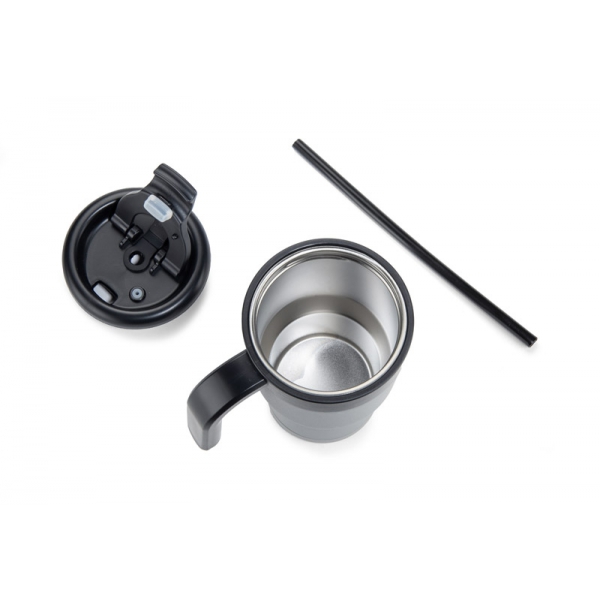 Kubek termiczny TUVO o pojemności 530 ml to solidny i stylowy gadżet wykonany ze stali nierdzewnej. Utrzymuje temperaturę napoju do 5 godzin, dzięki czemu świetnie sprawdza się w biurze, w podróży i w terenie. Posiada poręczny uchwyt, klasyczny ustnik oraz praktyczne miejsce na słomkę z elastyczną zatyczką. Gumowa, antypoślizgowa podstawa zapewnia stabilność na różnych powierzchniach. To funkcjonalny dodatek dla mobilnych pracowników, branży kreatywnej i wszystkich, którzy lubią mieć ulubiony napój zawsze pod ręką – wygodnie i w dobrym stylu.