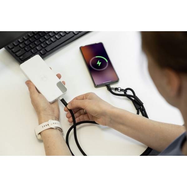 CHARD to innowacyjne połączenie smyczy na telefon z przewodem do ładowania o mocy do 60W. Z jednej strony pełni funkcję wygodnego uchwytu, który można nosić na szyi lub przez ramię, z drugiej – ukryty wewnątrz kabel USB-C pozwala na szybkie ładowanie oraz przesył danych. Dzięki karabińczykowi i dołączonemu adapterowi do telefonu masz swój smartfon zawsze pod ręką – bezpiecznie i bez plątaniny kabli. CHARD to nowoczesny gadżet, który sprawdzi się zarówno na co dzień, jak i w terenie, podczas pracy, targów czy podróży.