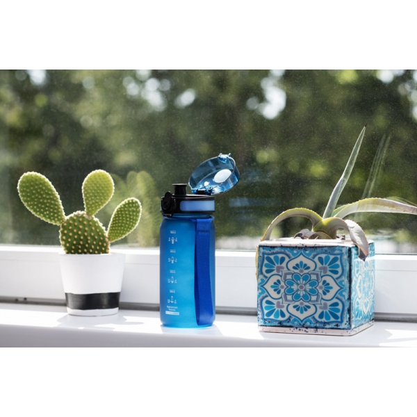 MOTIVA mini to kompaktowa butelka z miarką i blokowanym ustnikiem, idealna do codziennego użytku – w biurze, w podróży czy na eventach. Jej poręczna pojemność (500 ml) sprawia, że łatwo zmieści się w torbie lub plecaku, a wygodny pasek umożliwia komfortowe noszenie. Dzięki nowoczesnemu wyglądowi i praktycznym funkcjom doskonale sprawdzi się jako gadżet reklamowy – zwłaszcza w akcjach prozdrowotnych lub zestawach promocyjnych.