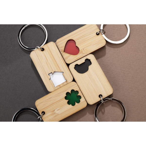 CARVE to bambusowy brelok z precyzyjnie wyciętym, kolorowym motywem (dom, samochód, serce lub koniczyna) – każdy kolor odpowiada innemu symbolowi. Estetyczny i trwały, doskonale sprawdzi się jako gadżet reklamowy z miejscem na znakowanie.