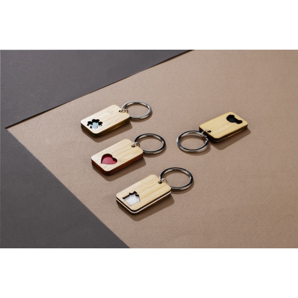 CARVE to bambusowy brelok z precyzyjnie wyciętym, kolorowym motywem (dom, samochód, serce lub koniczyna) – każdy kolor odpowiada innemu symbolowi. Estetyczny i trwały, doskonale sprawdzi się jako gadżet reklamowy z miejscem na znakowanie.