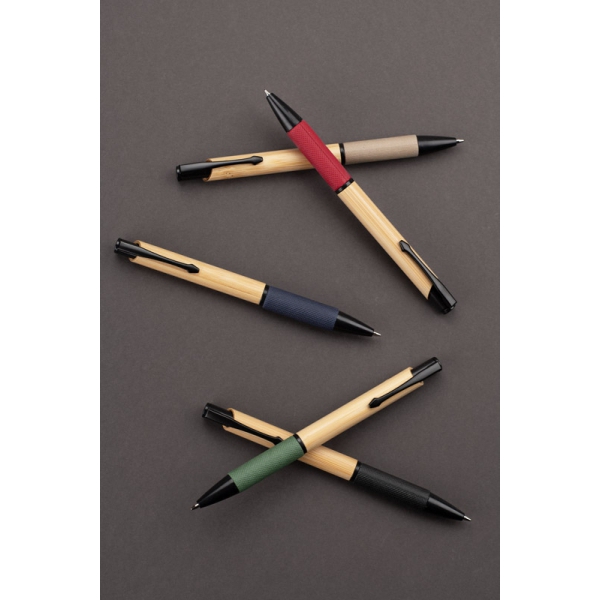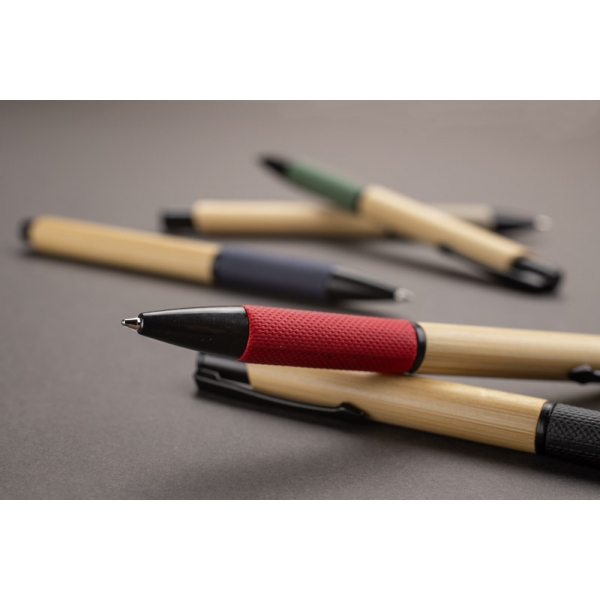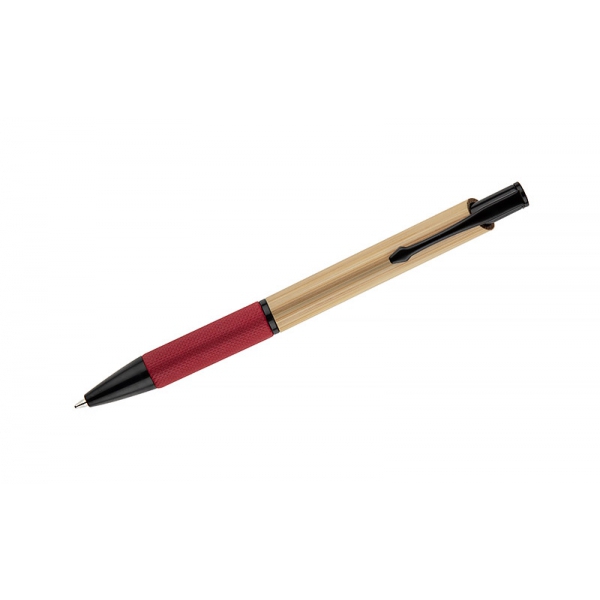 Długopis bambusowy NATU łączy prostą formę z detalami o naturalnym charakterze. Korpus wykonany z bambusa uzupełniono czarnymi elementami mechanizmu oraz uchwytem z tłoczonego papieru, który poprawia komfort trzymania. Długopis wyposażony jest we wkład typu Parker, co zapewnia płynne i wygodne pisanie. Subtelny, a zarazem funkcjonalny gadżet piśmienniczy o charakterze inspirowanym naturą.