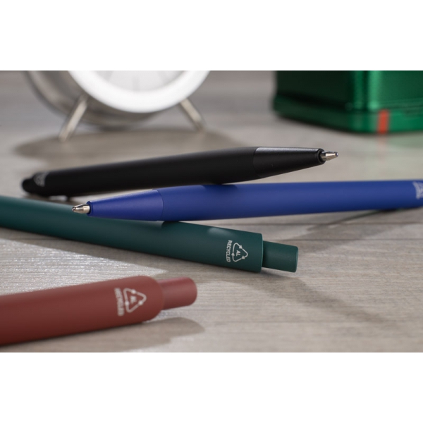 Długopis RALITY wyróżnia się smukłą, delikatnie profilowaną sylwetką, która dobrze leży w dłoni i nadaje całości nowoczesnego charakteru. Matowe, gumowane wykończenie typu soft touch podkreśla elegancję, a subtelnie zwężająca się linia korpusu dodaje mu lekkości. Wykonany z aluminium pochodzącego z recyklingu, łączy minimalistyczny design z odpowiedzialnym wyborem materiałów – świetny wybór do świadomej komunikacji marki.