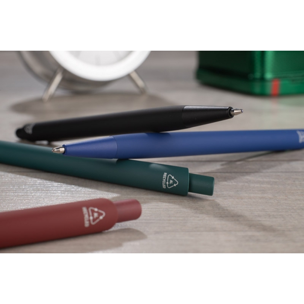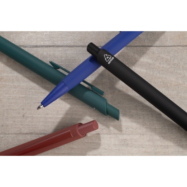 Długopis RALITY wyróżnia się smukłą, delikatnie profilowaną sylwetką, która dobrze leży w dłoni i nadaje całości nowoczesnego charakteru. Matowe, gumowane wykończenie typu soft touch podkreśla elegancję, a subtelnie zwężająca się linia korpusu dodaje mu lekkości. Wykonany z aluminium pochodzącego z recyklingu, łączy minimalistyczny design z odpowiedzialnym wyborem materiałów – świetny wybór do świadomej komunikacji marki.