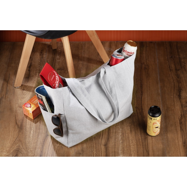 TOTELLO to pojemna torba wykonana z wytrzymałej mieszanki poliestru i bawełny. Ma szerokie, miękkie dno i boki, które zwiększają wygodę użytkowania. Długie i mocne uchwyty umożliwiają komfortowe noszenie na ramieniu, a całość zapinana jest na solidną metalową napę. Wewnątrz znajdują się dwie praktyczne kieszonki: mała zamykana na zamek oraz boczna, otwarta – idealna na butelkę wody. Na zewnątrz dodano boczną kieszeń, w której zmieszczą się klapki, kubek termiczny, kwiaty lub inne akcesoria. TOTELLO świetnie sprawdzi się podczas zakupów, na plaży i w codziennym użytkowaniu.