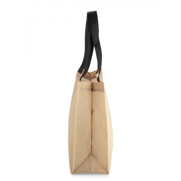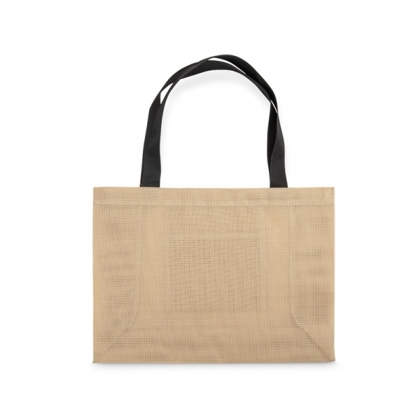 Torba plażowa BAZA została wykonana z przewiewnego, dziurkowanego materiału, który idealnie sprawdza się w letnich warunkach. Poszerzane dno i boki zwiększają pojemność, dzięki czemu torba pomieści ręcznik, kosmetyki i inne niezbędne akcesoria. Posiada parciane uchwyty zapewniające wygodne noszenie oraz wewnętrzną, otwartą kieszonkę na drobiazgi. Na zewnątrz umieszczono naszywkę stanowiącą miejsce do znakowania. Lekka, funkcjonalna i praktyczna – doskonała na plażę, basen lub letnie zakupy.