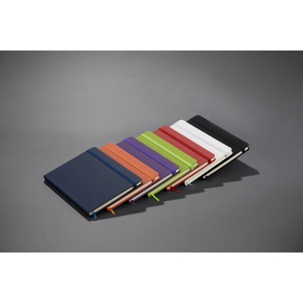rVITAL to praktyczny notes reklamowy w formacie A5, idealny do codziennego użytku w biurze lub w terenie. Zawiera 70 szytych kartek w kratkę, wykonanych z papieru w kolorze ecru o gramaturze 70 g/m². Miękka okładka z recyklingowanego materiału skóropodobnego (PU) dobrze znosi intensywne użytkowanie, a elastyczna gumka ułatwia zamykanie. rVITAL świetnie sprawdzi się jako funkcjonalny gadżet promocyjny lub element firmowego zestawu upominkowego.