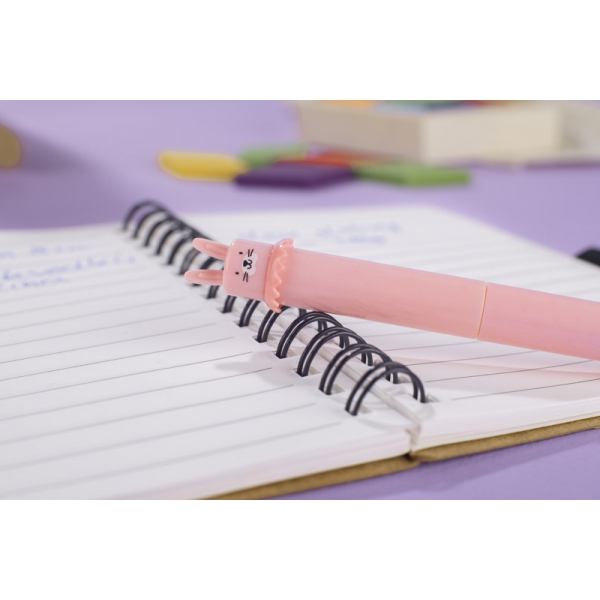 Długopis ANIMAL z motywem królika wyróżnia się lekko humorystycznym stylem i przyjemnym w dotyku, lakierowanym wykończeniem. Korpus w odcieniu zieleni oraz nasadka w kształcie królika nadają mu wyjątkowy charakter. Mechanizm przekręcany typu twist umożliwia łatwe wysuwanie żelowego wkładu (0,5 mm), który gwarantuje płynne i równomierne pisanie. To praktyczny i zabawny gadżet, który wnosi odrobinę luzu do codziennych obowiązków.