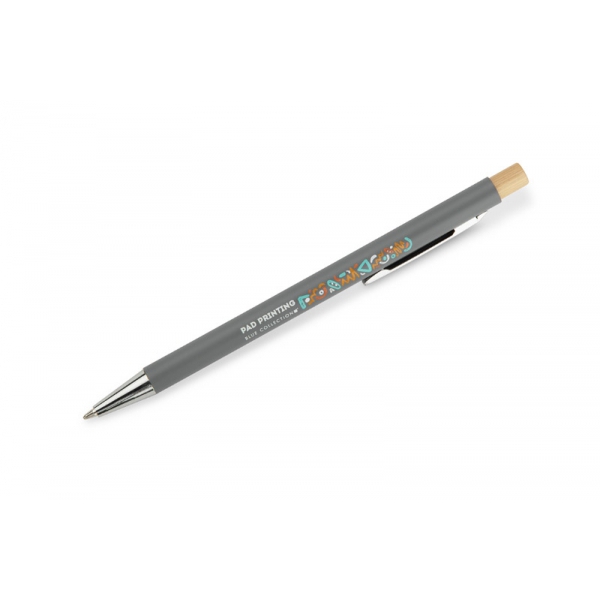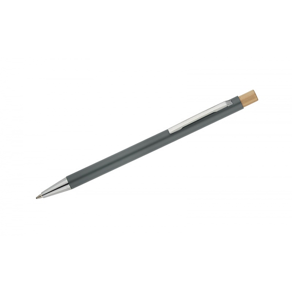 Długopis KIVO to smukły i lekki model o satynowym wykończeniu, który zapewnia wyjątkowy komfort pisania. Subtelny bambusowy przycisk stanowi naturalny akcent, podkreślający nowoczesny charakter długopisu. Mechanizm automatyczny umożliwia wygodne wysuwanie wkładu typu X20 o grubości pisania 1,0 mm, gwarantującego miękki i równy zapis. KIVO to elegancki i funkcjonalny gadżet reklamowy, idealny do codziennego użytku w biurze czy podczas spotkań.