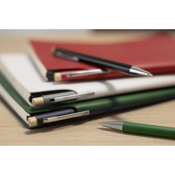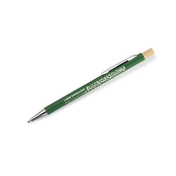 Długopis KIVO to smukły i lekki model o satynowym wykończeniu, który zapewnia wyjątkowy komfort pisania. Subtelny bambusowy przycisk stanowi naturalny akcent, podkreślający nowoczesny charakter długopisu. Mechanizm automatyczny umożliwia wygodne wysuwanie wkładu typu X20 o grubości pisania 1,0 mm, gwarantującego miękki i równy zapis. KIVO to elegancki i funkcjonalny gadżet reklamowy, idealny do codziennego użytku w biurze czy podczas spotkań.