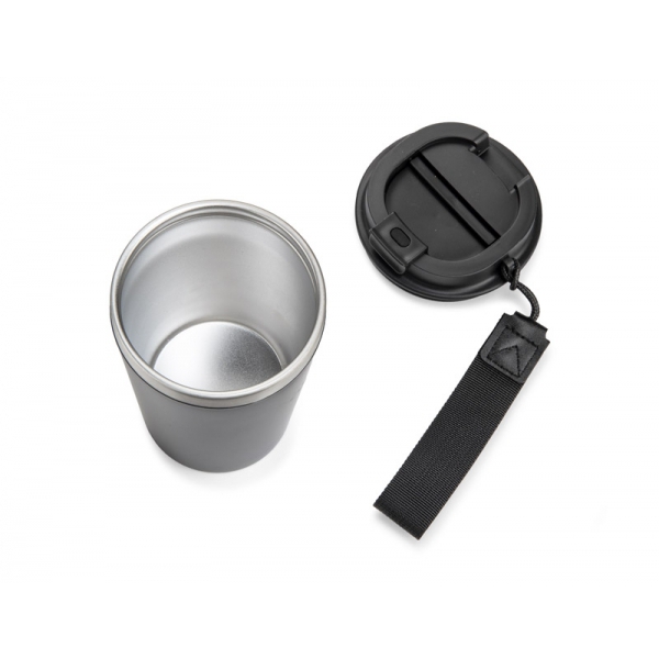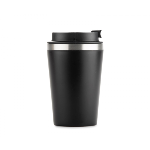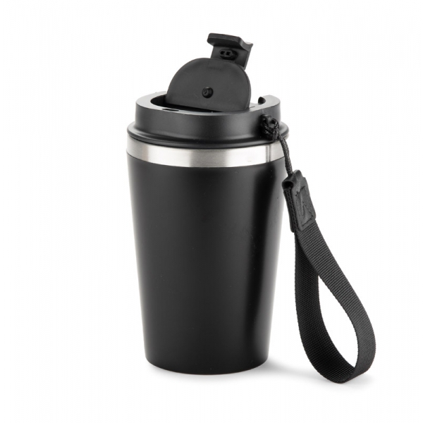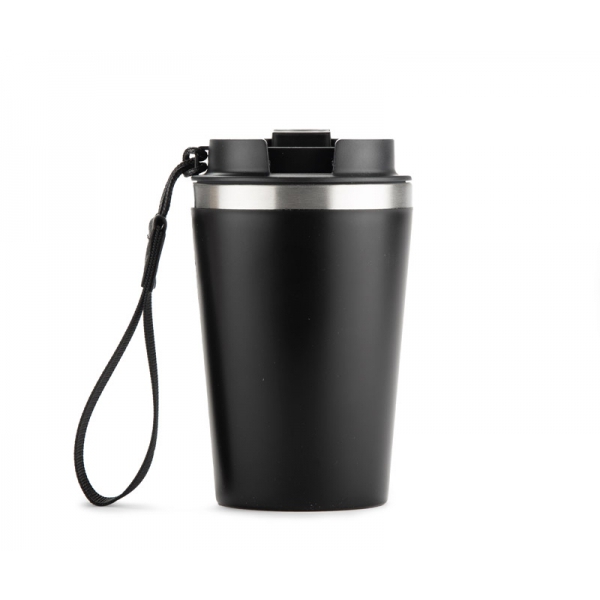Kubek termiczny SORSO o pojemności 350 ml to praktyczny model zaprojektowany do picia kawy w biegu. Wyposażony w pokrywkę typu flip-top z klapką otwieraną od góry i mechanizmem „podnieś”, umożliwia wygodne korzystanie jedną ręką. Podwójne ścianki pomagają utrzymać temperaturę napoju do 2 godzin, a dołączony uchwyt w formie smyczy ułatwia przenoszenie. Prosta forma i matowe wykończenie sprawiają, że kubek dobrze sprawdza się w codziennym użytkowaniu.