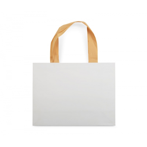 Torba papierowa DUNA w rozmiarze dużym to eleganckie i solidne opakowanie idealne do większych zestawów prezentowych lub produktów premium. Wykonana z grubego, sztywnego papieru, zachowuje kształt nawet przy cięższej zawartości. Szerokie uchwyty z taśmy materiałowej zapewniają wygodne przenoszenie i podkreślają jej luksusowy charakter. Prosty, klasyczny design sprawia, że doskonale sprawdza się podczas eventów firmowych, gal czy kampanii prezentowych. Torba dostępna z możliwością znakowania logo.