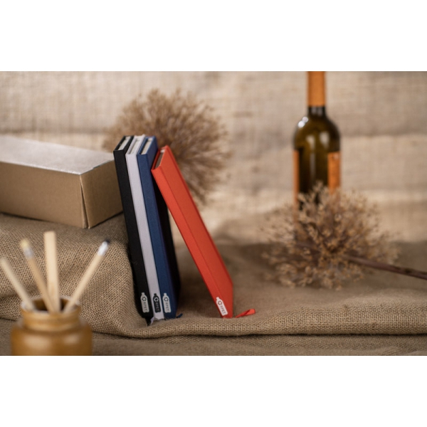 Notes LAPRE w formacie A5 to praktyczny wybór do codziennego notowania – posiada kartki w kratkę w kolorze ecru, szytą oprawę oraz elastyczną gumkę ułatwiającą zamykanie. Strukturyzowana okładka o wyczuwalnej fakturze nadaje mu nowoczesny wygląd i dobrze prezentuje się jako nośnik logo. Dodatkowo notes wyposażony jest w tasiemkę pełniącą funkcję zakładki.