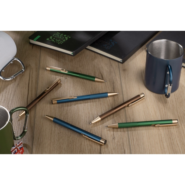 Długopis VITE to elegancki model wykonany z metalu, wyposażony w automatyczny mechanizm wysuwu. Korpus w matowym wykończeniu kontrastuje z chromowanymi detalami i klipem w kolorze szampańskiego złota. Długopis posiada wkład typu G2 z tuszem półżelowym o grubości pisania 1,0 mm, który zapewnia płynny, równy zapis. Dzięki solidnej konstrukcji i starannemu wykończeniu stanowi idealny gadżet reklamowy dla osób ceniących nowoczesny design i precyzję pisania.