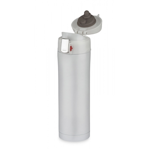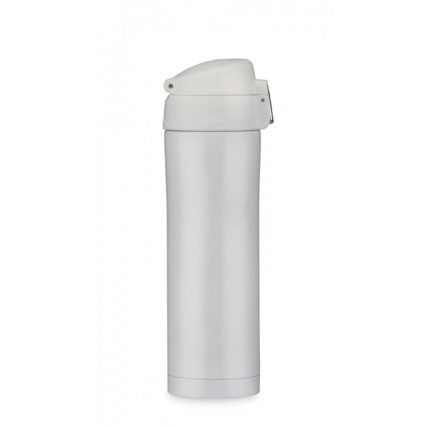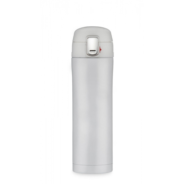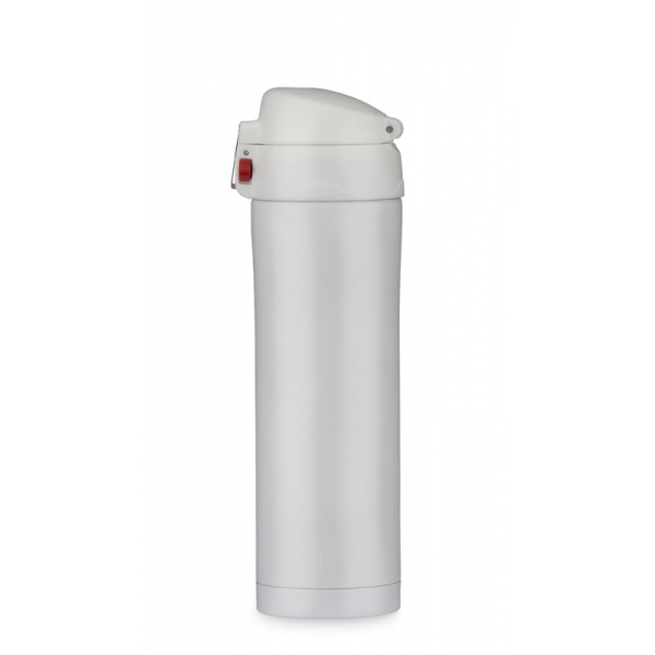 Kubek termiczny LOCK MAT o pojemności 440 ml to niezawodny towarzysz w podróży i w biurze. Dzięki podwójnej ściance z izolacją próżniową utrzymuje temperaturę napojów przez długi czas, a zewnętrzna powierzchnia nie nagrzewa się, chroniąc dłonie przed oparzeniem. Pokrywka typu flip-top z klapką otwieraną od góry pozwala na wygodne picie i szczelne zamknięcie – kubek nie przecieka nawet w torbie. Mechanizm otwierania „naciśnij” ułatwia obsługę jedną ręką. Matowe wykończenie nadaje mu nowoczesny wygląd, a nowe kolory sprawiają, że łatwo dopasować go do identyfikacji wizualnej marki. Produkt można oznakować logo, tworząc praktyczny i estetyczny gadżet reklamowy.