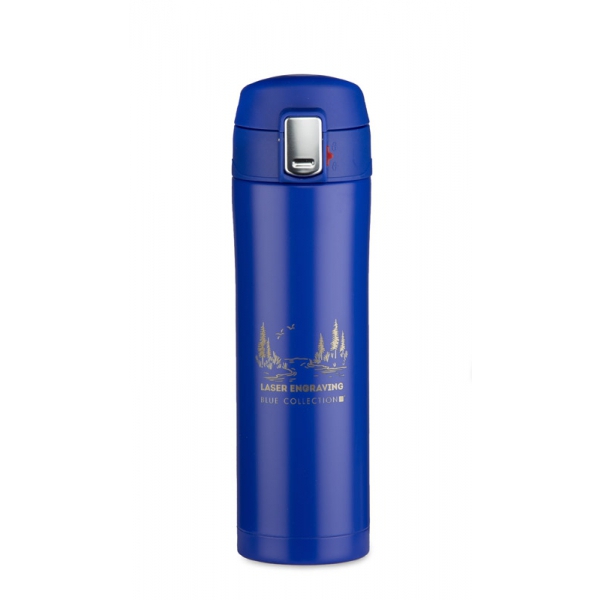 Kubek termiczny LOCK MAT o pojemności 440 ml to niezawodny towarzysz w podróży i w biurze. Dzięki podwójnej ściance z izolacją próżniową utrzymuje temperaturę napojów przez długi czas, a zewnętrzna powierzchnia nie nagrzewa się, chroniąc dłonie przed oparzeniem. Pokrywka typu flip-top z klapką otwieraną od góry pozwala na wygodne picie i szczelne zamknięcie – kubek nie przecieka nawet w torbie. Mechanizm otwierania „naciśnij” ułatwia obsługę jedną ręką. Matowe wykończenie nadaje mu nowoczesny wygląd, a nowe kolory sprawiają, że łatwo dopasować go do identyfikacji wizualnej marki. Produkt można oznakować logo, tworząc praktyczny i estetyczny gadżet reklamowy.
