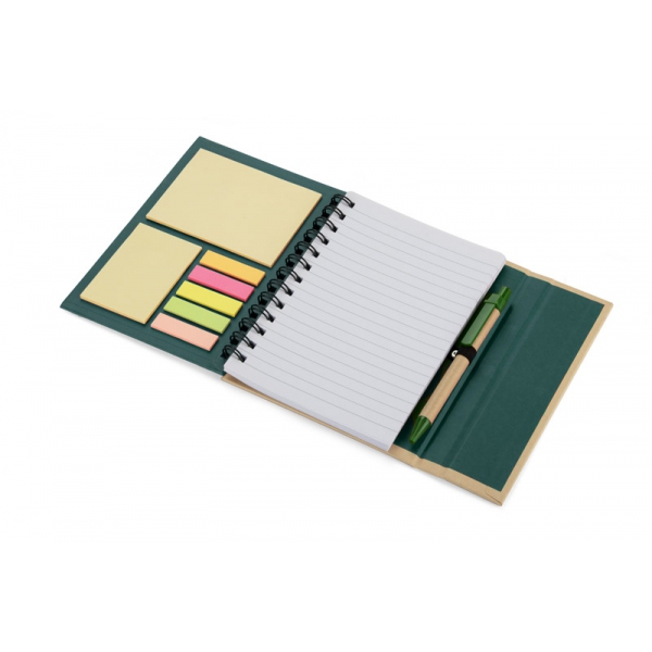 Notes MAGO B6 to funkcjonalny notatnik kołowy zamykany na magnes, idealny do codziennego użytku w biurze lub w terenie. W środku znajduje się 70 białych kartek w linie, zestaw samoprzylepnych karteczek (6 bloczków po 25 sztuk: 2 większe oraz 4 indeksujące w neonowych kolorach) oraz papierowy długopis, umieszczony w praktycznym uchwycie. Poręczny i kompletny zestaw do notowania i organizowania informacji – zawsze pod ręką.