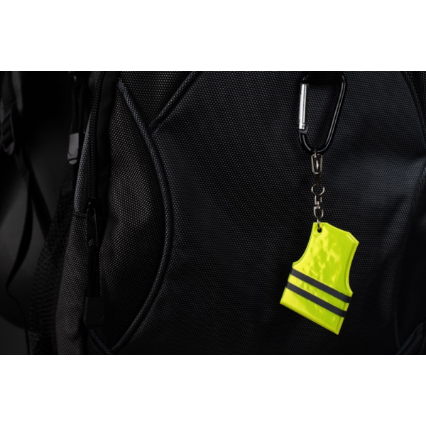 Brelok REFLO w kształcie kamizelki to praktyczny i wyrazisty gadżet reklamowy. Wykonany z materiału z elementami odbijającymi światło. Umieszczony na metalowym kółku z dodatkowym karabińczykiem obrotowym, pozwala łatwo przypiąć go do kluczy, torby czy plecaka. Dzięki możliwości znakowania brelok staje się nośnikiem reklamy o charakterze użytkowym, który sprawdzi się w kampaniach związanych z bezpieczeństwem.