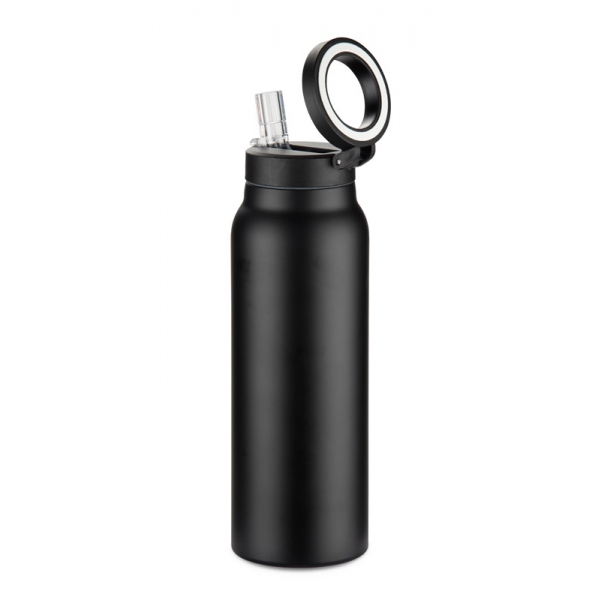 Metalowa butelka termiczna MAGHOLD o pojemności 700 ml posiada podwójną ściankę z izolacją próżniową, która utrzymuje temperaturę napojów do 8 godzin. Wyposażona w pokrywkę typu straw lid ze zintegrowaną słomką i mechanizmem otwierania „podnieś”, pozwala wygodnie pić w ruchu. Składany, magnetyczny uchwyt pełni funkcję rączki do przenoszenia, a także umożliwia przymocowanie butelki do metalowej powierzchni lub wykorzystanie go jako stojaka do telefonu.