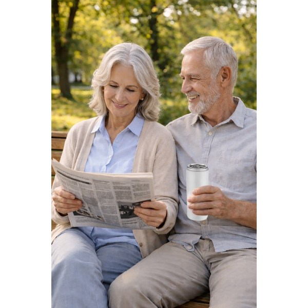 Kubek termiczny KANZO o pojemności 600 ml ma kształt inspirowany puszką, który nadaje mu nowoczesny i uniwersalny wygląd. Wykonany z metalu, posiada podwójną ściankę z izolacją, utrzymującą temperaturę napoju do 5 godzin. Pokrywka typu slide lid z otworem zasuwanym palcem oraz mechanizm otwierania „przesuń” zapewniają wygodne korzystanie w podróży i w pracy. Zakręcane zamknięcie z przezroczystego tworzywa gwarantuje szczelność, a solidna konstrukcja – trwałość użytkowania. Idealny jako praktyczny gadżet reklamowy z możliwością znakowania.