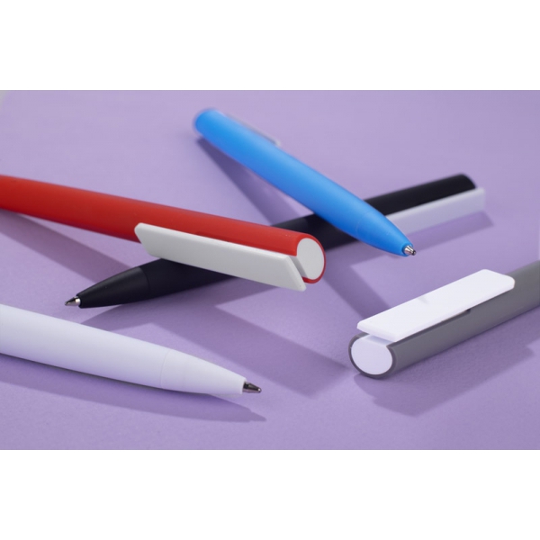 Długopis ALEO wykonany jest z tworzywa pokrytego matową powłoką soft touch, która nadaje mu przyjemną, lekko gumowaną strukturę. Dzięki automatycznemu mechanizmowi wysuwu i wkładowi typu X20 o grubości pisania 0,7 mm zapewnia płynne i komfortowe pisanie. Biały, płaski klip stanowi idealne miejsce do znakowania logo. Prosty, nowoczesny kształt i gładka powierzchnia sprawiają, że ALEO sprawdza się jako uniwersalny gadżet reklamowy.
