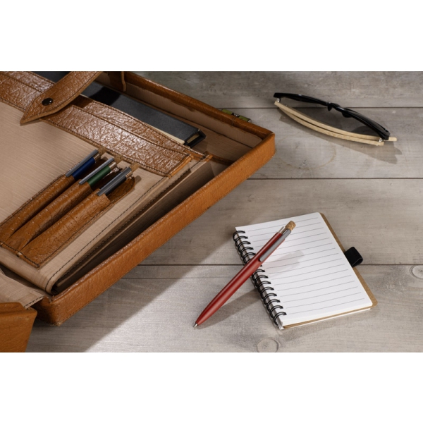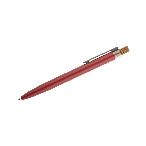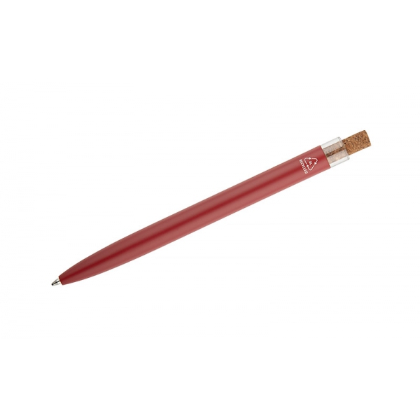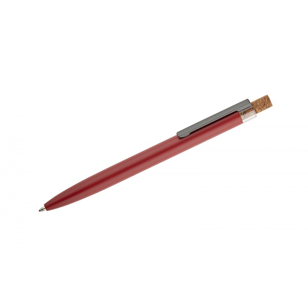 Długopis KORIN wykonany jest z recyklingowanego aluminium i pokryty lakierowanym wykończeniem, które nadaje mu gładką, satynową powierzchnię. Wyposażony w automatyczny mechanizm, wkład typu G2 o grubości pisania 1,0 mm oraz metalowy klips w kolorze grafitowym. Korkowy przycisk stanowi ciekawy akcent, podkreślający nowoczesny charakter długopisu. KORIN jest lekki, solidny i wygodny w codziennym użytkowaniu.