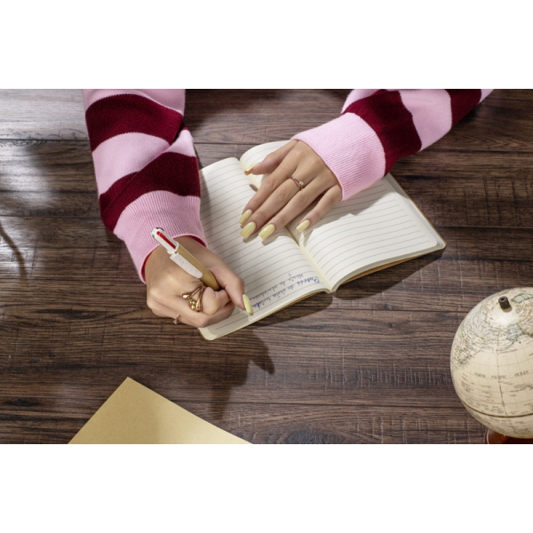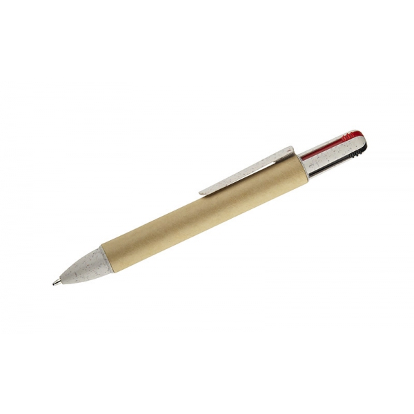 Długopis MIBO 4 w 1 to praktyczne narzędzie biurowe, które pozwala pisać w czterech kolorach — niebieskim, czarnym, czerwonym i zielonym. Korpus wykonany z papieru sprawia, że długopis jest lekki i przyjemny w użytkowaniu. Prosty, uniwersalny kształt oraz automatyczny mechanizm wysuwu ułatwiają szybkie przełączanie między kolorami. Wkłady typu X20 o grubości pisania 0,7 mm zapewniają płynne i czytelne pisanie. MIBO to funkcjonalny gadżet reklamowy z możliwością znakowania logo.
