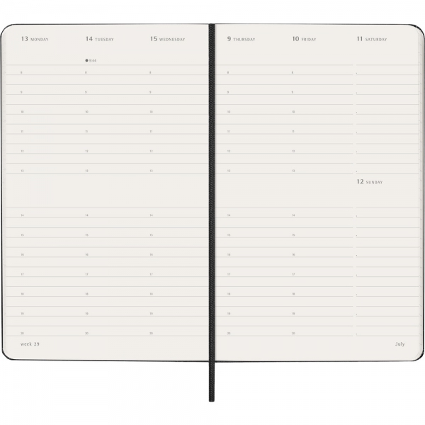 Kalendarz duży (ok. A5, large) MOLESKINE, twarda okładka, tygodniowy, wertykalny (144 str.), zakładka i elastyczna opaska do zamykania