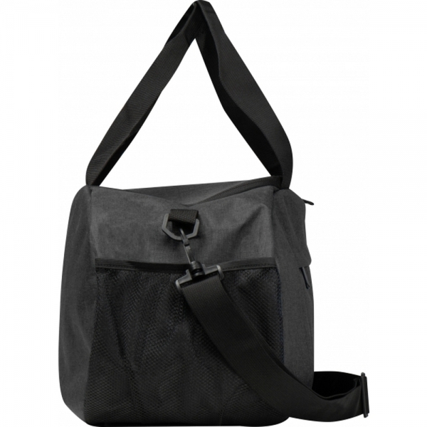 Torba sportowa, wykonana z materiału PET pochodzącego z recyklingu. Torba posiada pojemną komorę główną, frontową kieszeń zamykaną na zamek, dwa krótkie uchwyty i odpinany długi pasek na ramię.