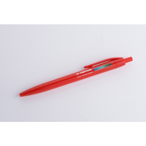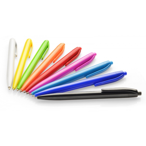 Plastikowy długopis BASIC z niebieskim wkładem. Logo nadrukujemy na korpusie.