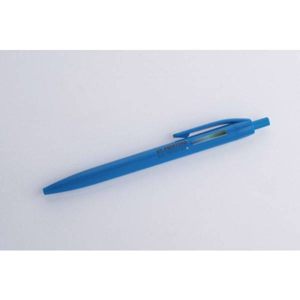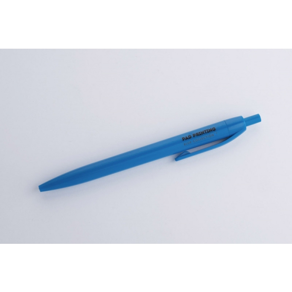 Plastikowy długopis BASIC z niebieskim wkładem. Logo nadrukujemy na korpusie.