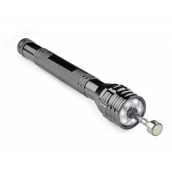 Latarka LED z 6 diodami oraz niezwykle przydatna funkcją magnesu umieszczonego na wysuwanym teleskopowym ramieniu. Końcówka ramienia zgina się zapewniając wygodne dojście w każdą szczelinę. Dzięki tej latarce bez problemu odnajdziemy i wyciągniemy zagubione śrubki, nakrętki czy inne drobne przedmioty. Logo wygrawerujemy na rączce latarki.