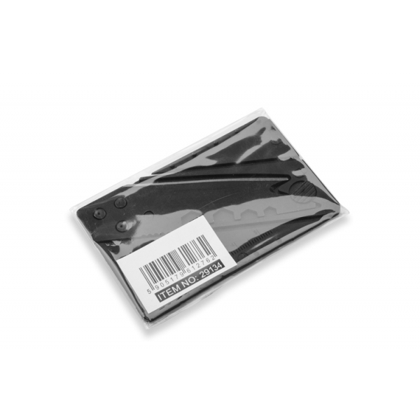 Nóż składany KLINGO to rozwiązanie w sytuacji, gdy nóż jest niezbędny a nie mamy przy sobie. Dzięki wymiarom i kształcie bliskim karty kredytowej ten gadżet zmieści się do portfela, dzięki czemu zawsze będzie pod ręką. Przemyślana budowa pozwala na złożenie ostrza w kilka sekund. Funkcje: linijka, nóż, klucze (4 rozmiary), otwieracz do puszek, przecinak do drutu.