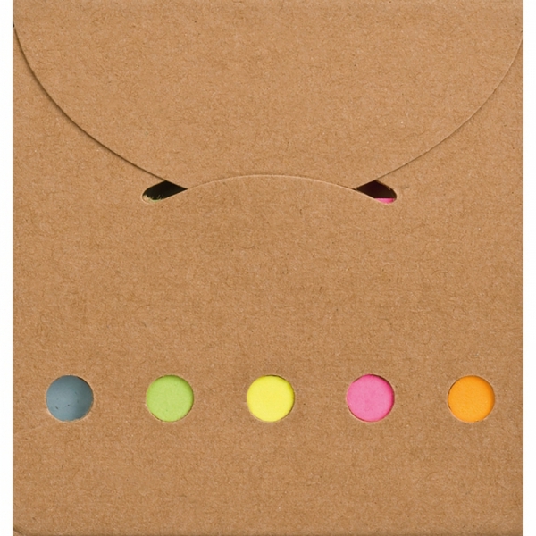 Karteczki samoprzylepne w kartonowym opakowaniu (25 sztuk większych żółtych i 5 kolorów po 25 sztuk karteczek mniejszych).